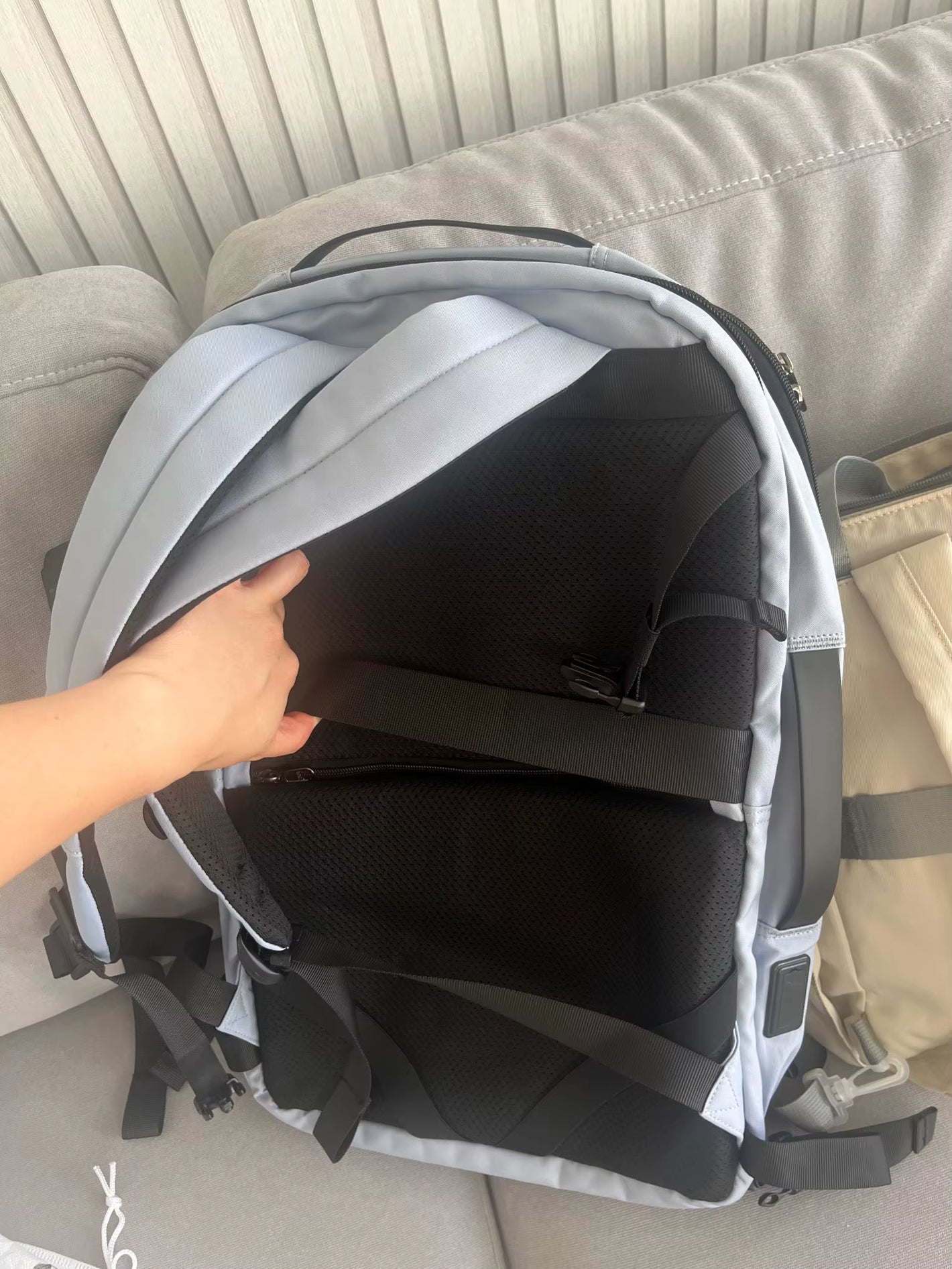 Ce sac m’a sauvé plusieurs fois lors de vols annulés ou retardés. Grâce au compartiment sous-vide, mes vêtements sont restés parfaitement organisés et frais. Les sangles en caoutchouc pour un ordinateur ou une tablette ne sont pas vraiment nécessaires, car le sac maintient déjà tout en place, parfois elles peuvent même gêner un peu. J’ai aussi testé l’imperméabilité avec une bouteille mal fermée, et tout est resté sec à l’intérieur. Je suis tellement satisfaite que je prévois d’en acheter un pour toute ma famille !