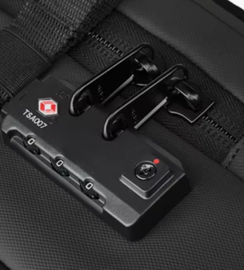 Le compartiment principal est équipé d’un cadenas homologué TSA et d’une poche arrière zippée cachée pour plus de sécurité.
